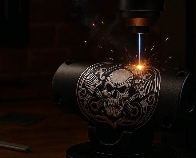 From powder-coated or other painted parts, metal items, leather goods, and wood. Now you can pair our durable finishes with crisp, permanent artwork, names, numbers, logos, etc.